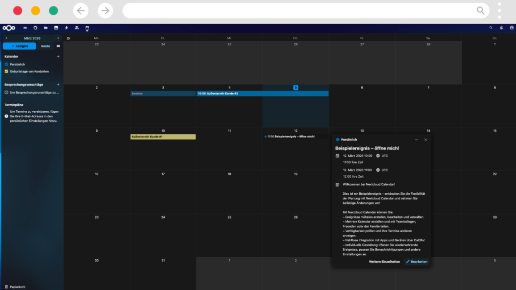 Nextcloud Groupware bündelt E-Mail, Kalender, Kontakte und Aufgaben an einem zentralen Ort.